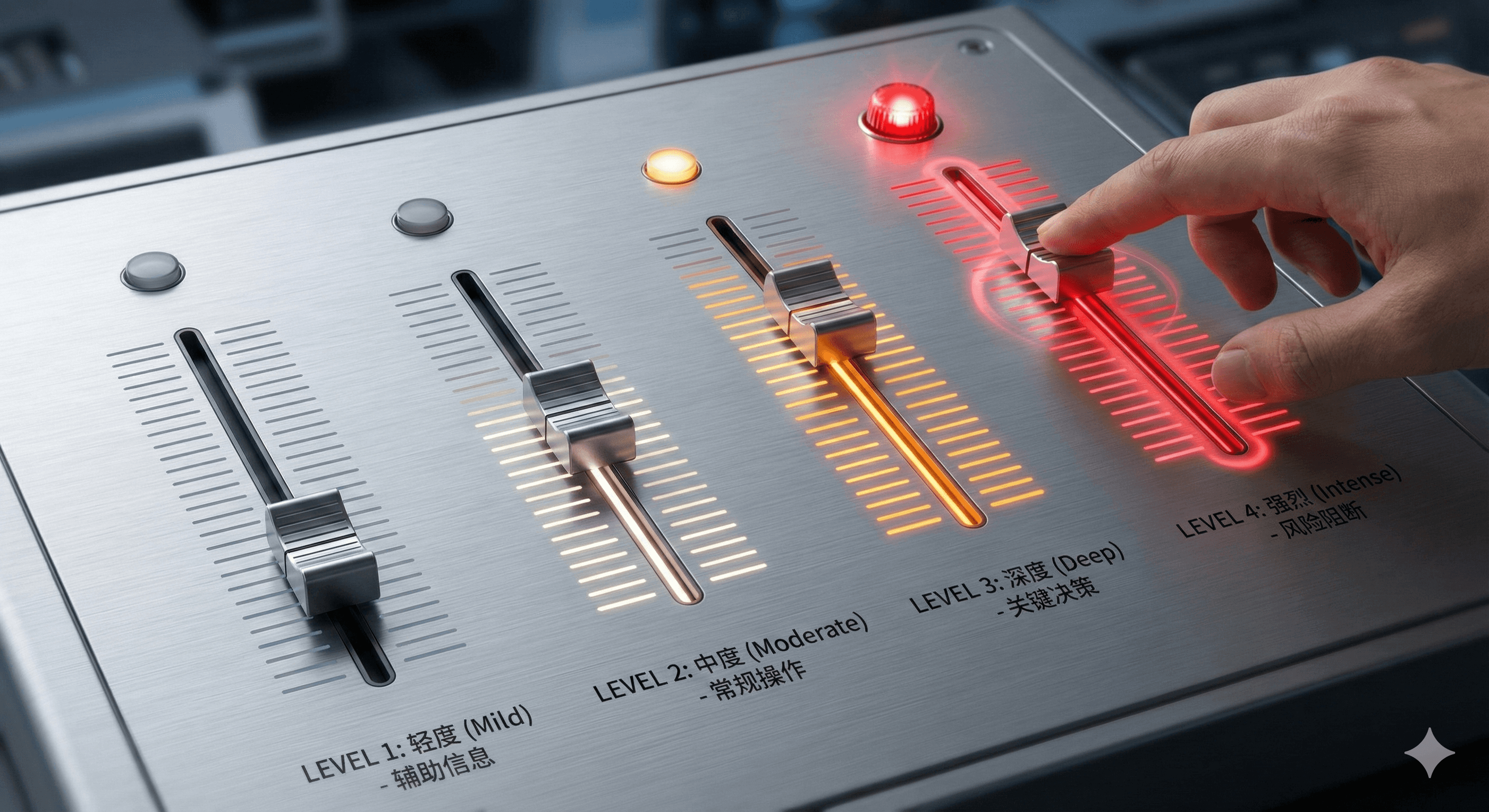 为了将抽象的“体验”转化为可执行的策略,我们将视觉干预划分为四个强度等级,用于匹配不同的业务权重: